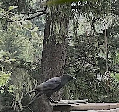 Corvidae is a family of birds that contains the crows, ravens, rooks, magpies, jackdaws, jays, treepies, choughs, and nutcrackers. Birds are an important part of our lake house experience. On my first visit to this property, I was acutely aware of the multitude of bird songs. The birds sounded so happy here and I continue to enjoy their melodies on a daily basis. The stellar’s jays visit our feeding perch in large numbers every day of the year. We were also honored with the presence of several ravens who would come and feed here regularly for a while.
